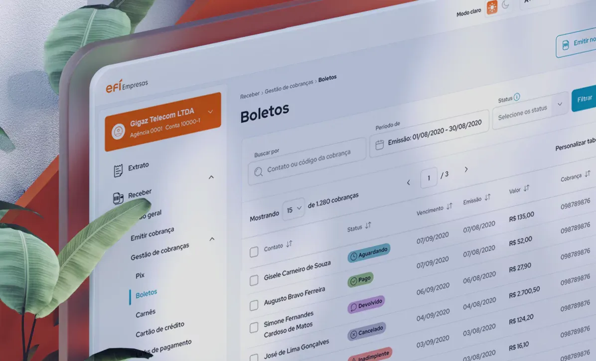 Simplifique a rotina cansativa de lidar com altos volumes de cobranças e descomplique a emissão e o envio de boletos com o Efí Bank!