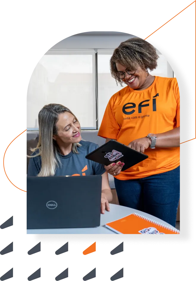 Por isso, em 2022, nos tornamos o Efí Bank. Uma nova marca, mais moderna e em harmonia com os novos tempos. Mas, ainda assim, com a mesma eficiência e os mesmos benefícios que nossos mais de 770 mil clientes confiam e amam.